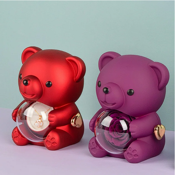 Urso giratório com rosas + colar de coração personalizado com nomes 💖💖