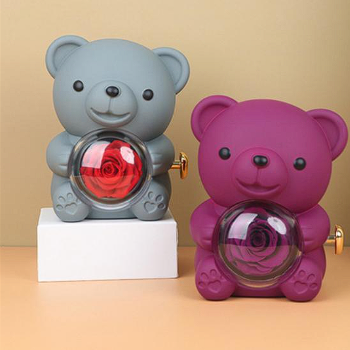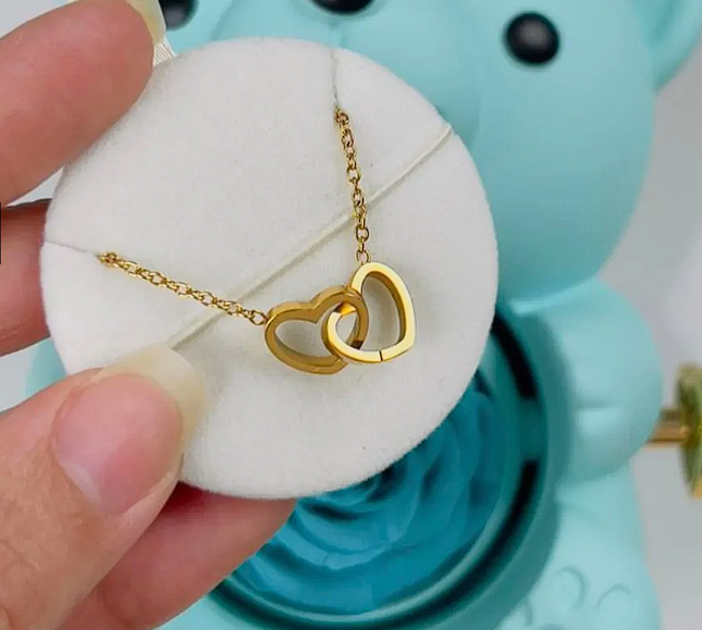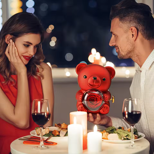 Urso giratório com rosas + colar de coração personalizado com nomes 💖